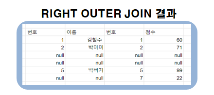 RIGHT OUTER JOIN은 오른쪽 테이블 기준으로 JOIN 하겠다는 것