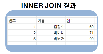 INNER JOIN된 결과를 보면 A 테이블과 B테이블이 모두 가지고 있는 데이터만이 검색됨