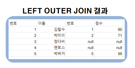 Left Outer Join은 왼쪽 테이블 기준으로 JOIN 하겠다는 것