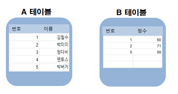 select * from A ,B WHERE A.번호 =B.번호(+);