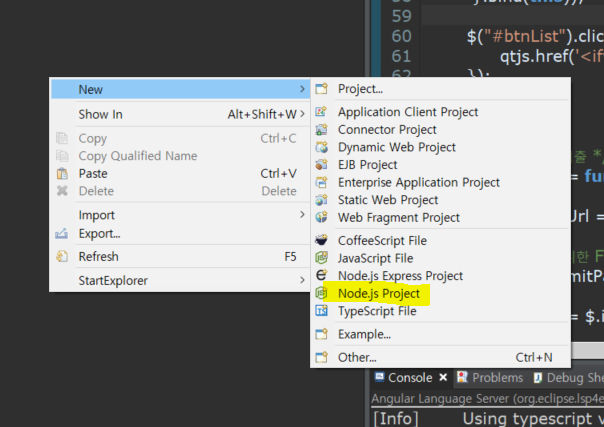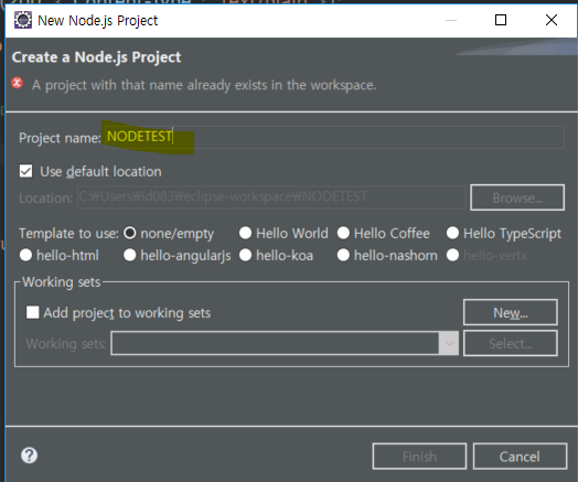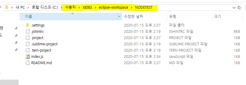 1.NODETEST 프로젝트명을 가진 프로젝트 생성