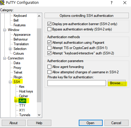 이렇게 만든 키는 putty SSH - Auth 에서 불러와서 저장해서 씀