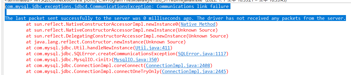 com.mysql.jdbc.exceptions.jdbc4.CommunicationsException: Communications link failure