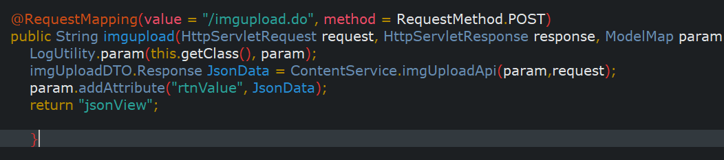 param.addAttibute 를 통해 data에 rtnValue를 담아 jsonView 형태로 return 한다.