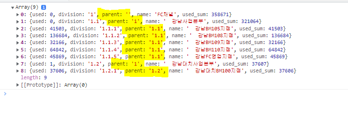 통계화면 개발중 하위부서의누적합을 구현하는것이 필요했다.